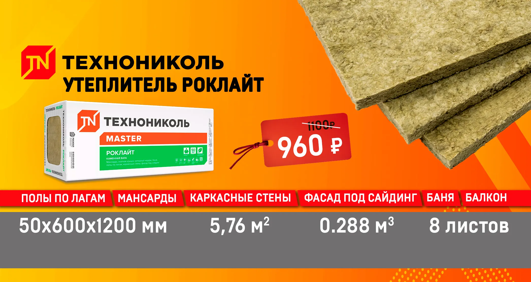 Утеплитель Роклайт Технониколь 50х600х1200мм (5,76м2)