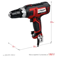 Сетевая дрель-шуруповерт ЗУБР 400 Вт, 40 Н·м (ДШ-М1-400-2)
