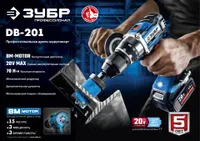 Бесщеточная дрель-шуруповерт ЗУБР Профессионал Т7, 20 В, 70 Н·м, 2 АКБ (4 А·ч), кейс (DB-201-42)