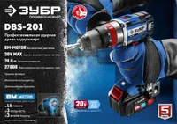 Дрель-шуруповерт ЗУБР Профессионал Т7, 20 В, 50 Н·м, 2 АКБ (4 А·ч), кейс (DL-201-22)